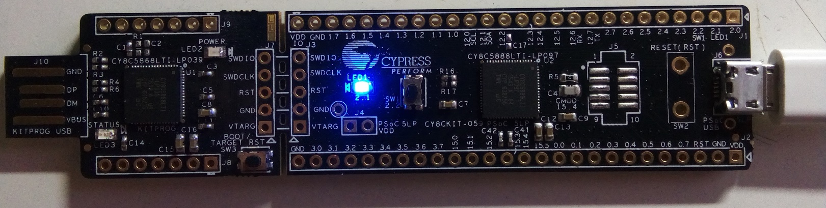実装されているデバイスは'CY8C5888LTI-LP097'のようです。