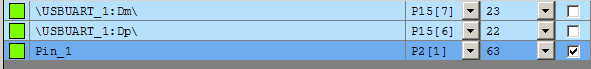 補足1:CY8CKIT-059の場合、P2_1に青色LEDが接続されているので、ピンアサインをP2_1にすると、参考例のプログラムでLEDが点滅するようになります。